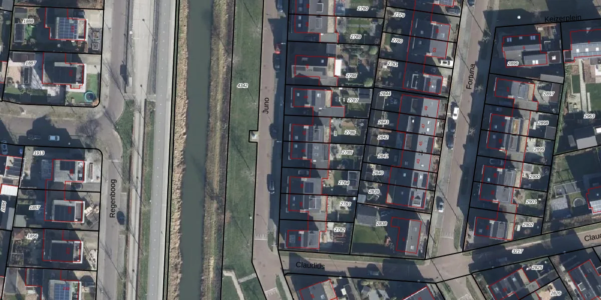 Het perceel waarop Juno 40 staat heeft een oppervlakte van 237 m². Dit is een middelgroot perceel. De perceeloppervlakte wordt geregistreerd door het Kadaster. Gedetailleerde informatie over de maten van dit perceel kunt u vinden in het rapport Kadastrale kaart met maatvoering van Juno 40.