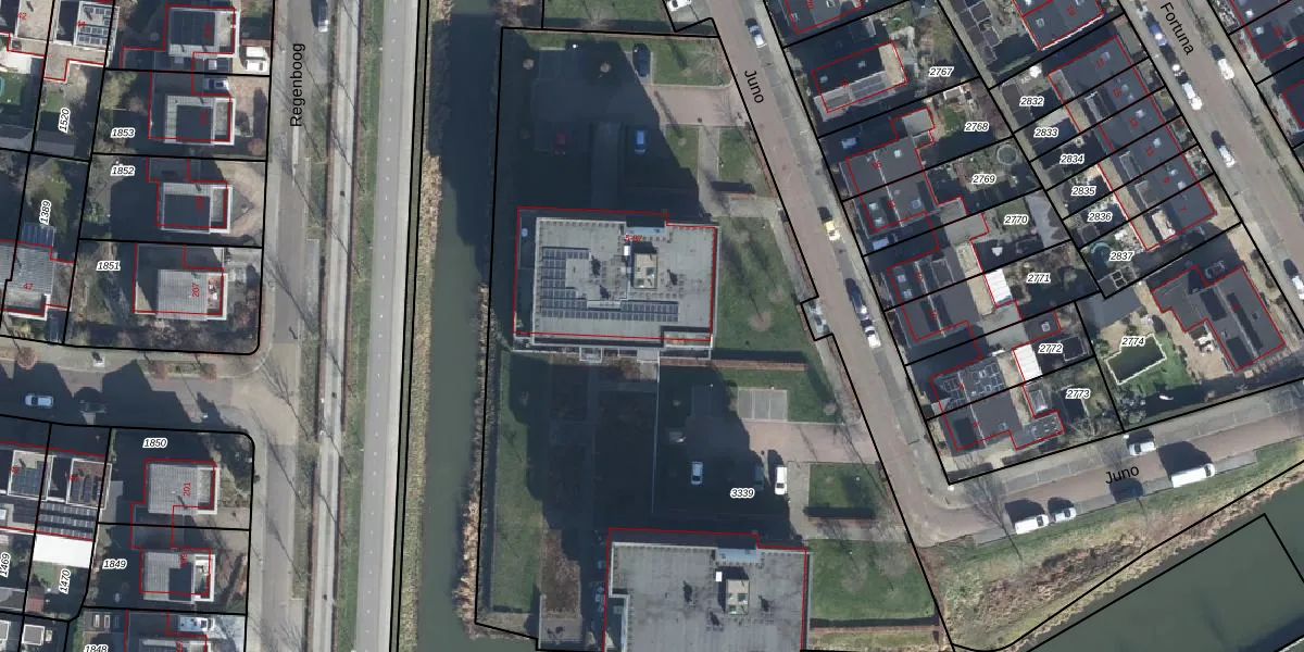 Het perceel waarop Juno 57 staat heeft een oppervlakte van 5050 m². Dit is een zeer groot perceel. De perceeloppervlakte wordt geregistreerd door het Kadaster. Gedetailleerde informatie over de maten van dit perceel kunt u vinden in het rapport Kadastrale kaart met maatvoering van Juno 57.