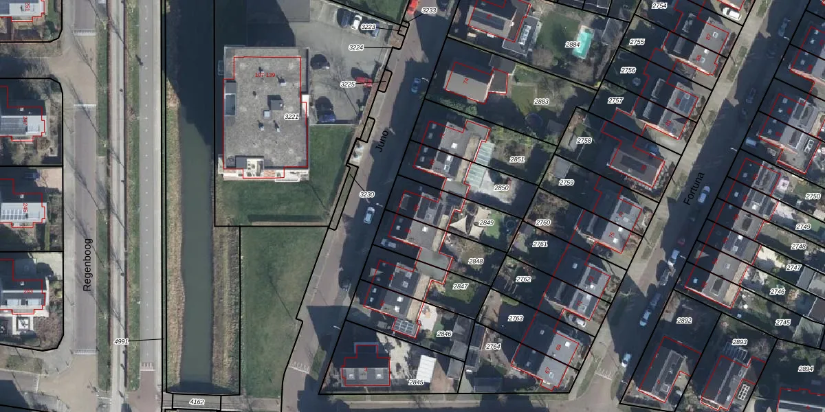 Het perceel waarop Juno 68 staat heeft een oppervlakte van 287 m². Dit is een middelgroot perceel. De perceeloppervlakte wordt geregistreerd door het Kadaster. Gedetailleerde informatie over de maten van dit perceel kunt u vinden in het rapport Kadastrale kaart met maatvoering van Juno 68.