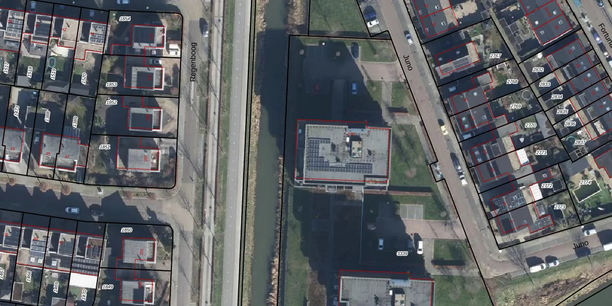 Het perceel waarop Juno 83 staat heeft een oppervlakte van 5050 m². Dit is een zeer groot perceel. De perceeloppervlakte wordt geregistreerd door het Kadaster. Gedetailleerde informatie over de maten van dit perceel kunt u vinden in het rapport Kadastrale kaart met maatvoering van Juno 83.
