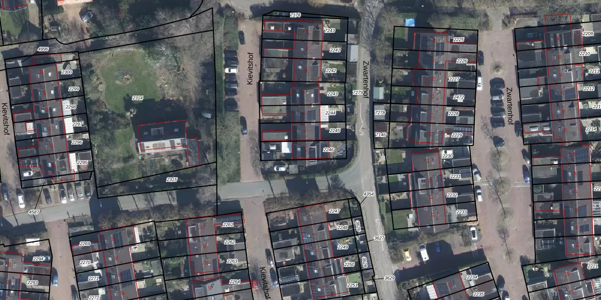 Gebruik de zoekbalk of klik op een perceel voor informatie over de adressen binnen dit perceel.