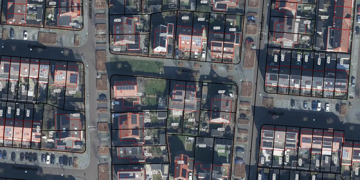 Gebruik de zoekbalk of klik op een perceel voor informatie over de adressen binnen dit perceel.