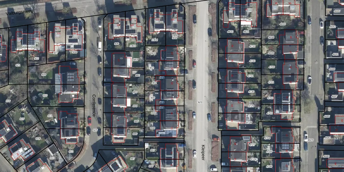 Gebruik de zoekbalk of klik op een perceel voor informatie over de adressen binnen dit perceel.