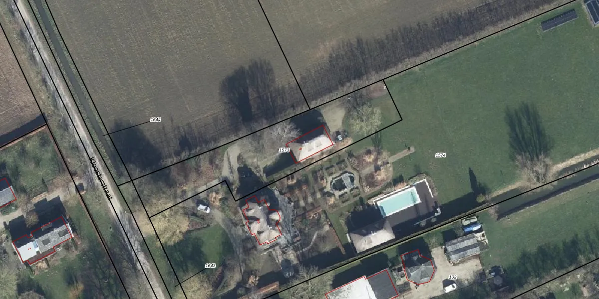 Kloosterstraat 9 is gelegen op kadastraal perceel ELS00M1573. Deze kadastrale aanduiding is uniek en wordt gebruikt door het Kadaster om eigendomsrechten en andere zakelijke rechten vast te leggen. Het perceel maakt onderdeel uit van de kadastrale gemeente Elst.