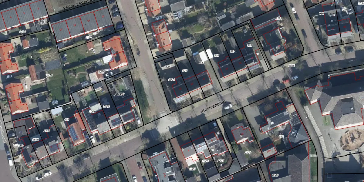Gebruik de zoekbalk of klik op een perceel voor informatie over de adressen binnen dit perceel.