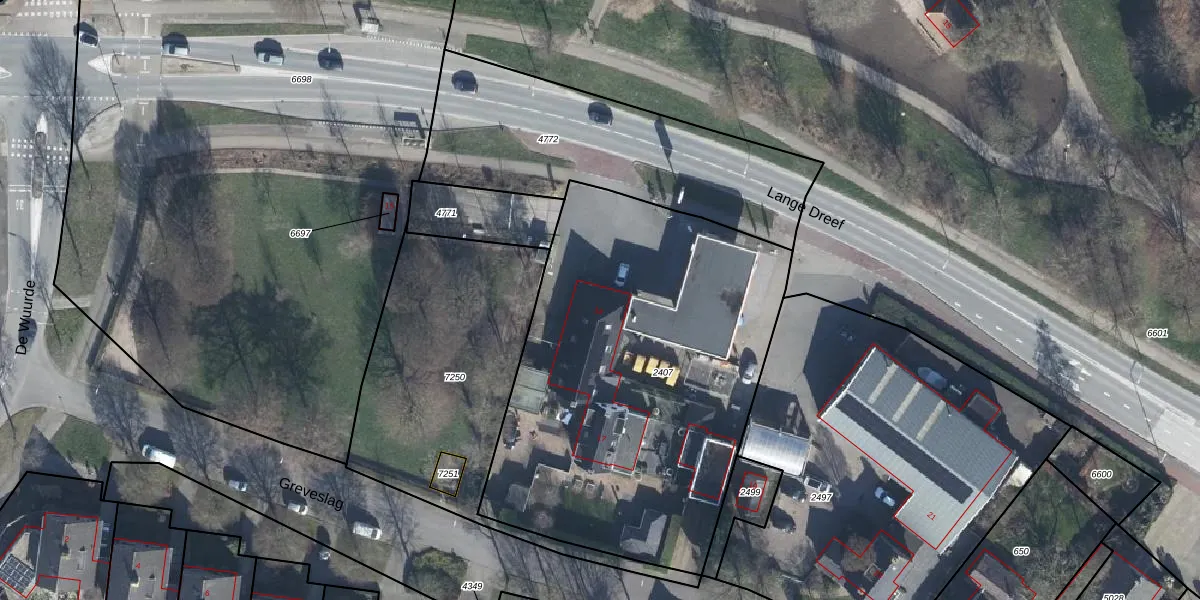 Lange Dreef 1-a is gelegen op kadastraal perceel ELS00K2407. Deze kadastrale aanduiding is uniek en wordt gebruikt door het Kadaster om eigendomsrechten en andere zakelijke rechten vast te leggen. Het perceel maakt onderdeel uit van de kadastrale gemeente Elst.