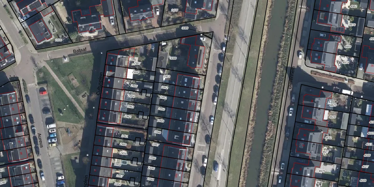 Het adres is gelegen op perceel 2452 in de sectie N en de kadastrale gemeente Elst. De kadastrale aanduiding is aldus ELS00-N-2452. Het perceel is 161 m² groot. Dat is kleiner dan de gemiddelde perceeloppervlakte in Elst, dat op 2925,13 m² ligt. Het grootste perceel in de kadastrale gemeente is 35,2 ha. Het kleinste perceel heeft een oppervlakte van 0 m². Er zijn geen andere adressen aanwezig op het perceel. In de Basisregistratie Kadaster (BRK) werden de grenzen van het perceel geregistreerd op 02-12-2010.