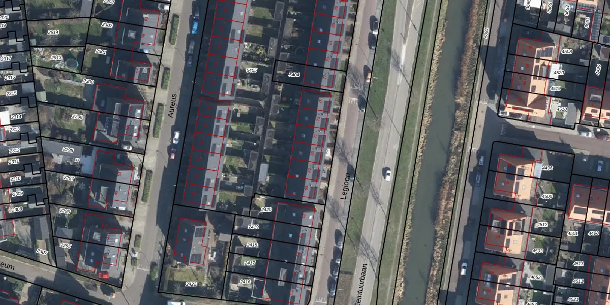 Het perceel waarop Legioen 69 staat heeft een oppervlakte van 3518 m². Dit is een zeer groot perceel. De perceeloppervlakte wordt geregistreerd door het Kadaster. Gedetailleerde informatie over de maten van dit perceel kunt u vinden in het rapport Kadastrale kaart met maatvoering van Legioen 69.