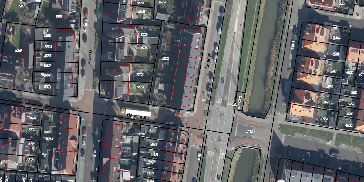 Legioen 7 is gelegen op kadastraal perceel ELS00N2388. Deze kadastrale aanduiding is uniek en wordt gebruikt door het Kadaster om eigendomsrechten en andere zakelijke rechten vast te leggen. Het perceel maakt onderdeel uit van de kadastrale gemeente Elst.
