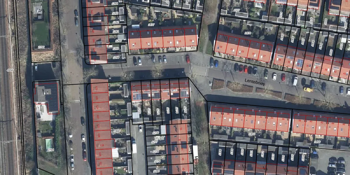 Het perceel waarop Lentebries 16 staat heeft een oppervlakte van 141 m². Dit is een middelgroot perceel. De perceeloppervlakte wordt geregistreerd door het Kadaster. Gedetailleerde informatie over de maten van dit perceel kunt u vinden in het rapport Kadastrale kaart met maatvoering van Lentebries 16.