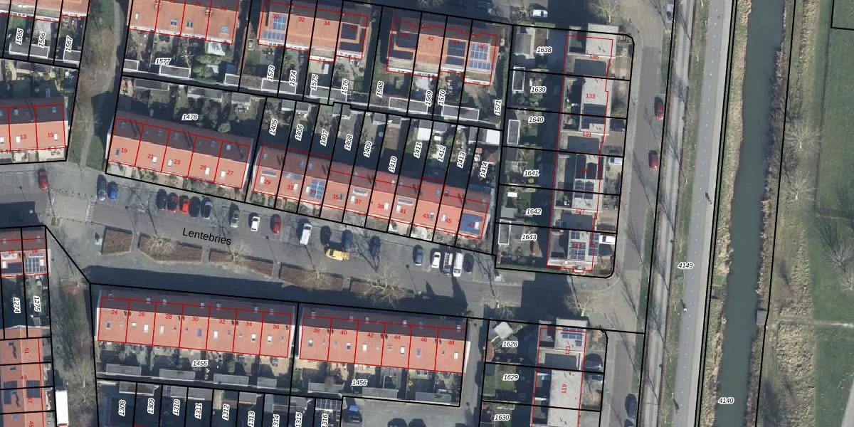 Het perceel waarop Lentebries 43 staat heeft een oppervlakte van 153 m². Dit is een middelgroot perceel. De perceeloppervlakte wordt geregistreerd door het Kadaster. Gedetailleerde informatie over de maten van dit perceel kunt u vinden in het rapport Kadastrale kaart met maatvoering van Lentebries 43.