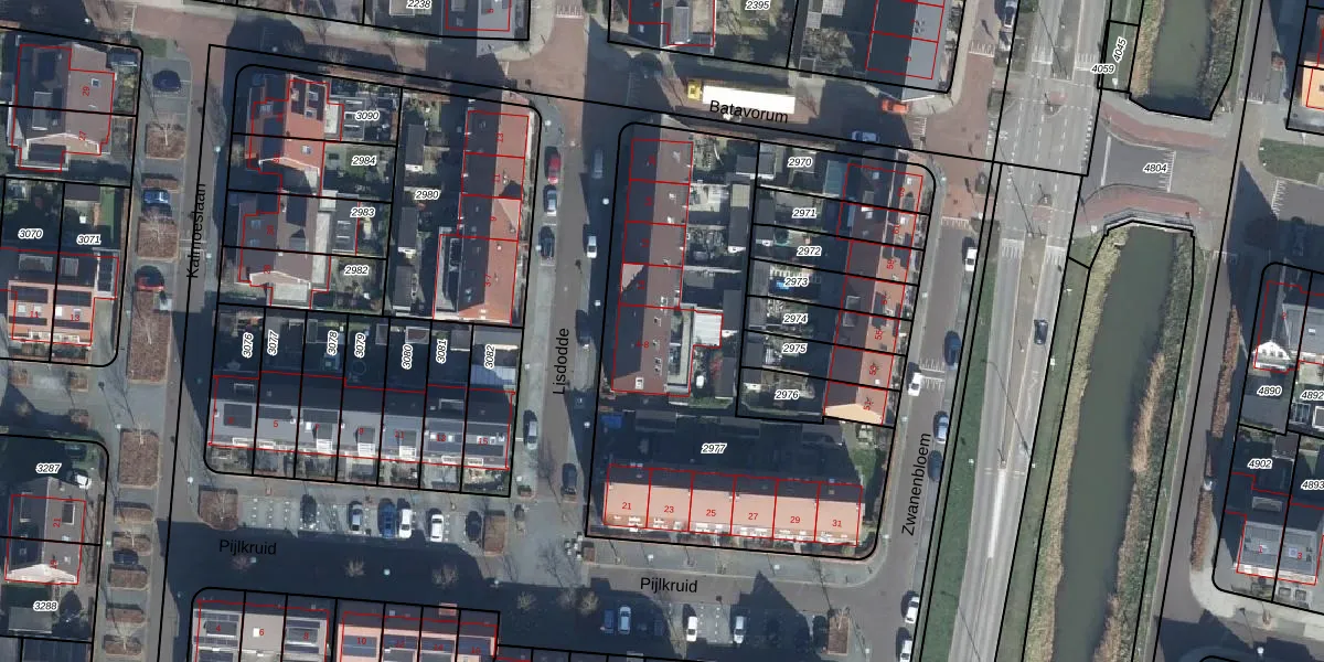 Het adres is gelegen op perceel 2977 in de sectie N en de kadastrale gemeente Elst. De kadastrale aanduiding is aldus ELS00-N-2977. Het perceel is 1783 m² groot. Dat is kleiner dan de gemiddelde perceeloppervlakte in Elst, dat op 2925,13 m² ligt. Het grootste perceel in de kadastrale gemeente is 35,2 ha. Het kleinste perceel heeft een oppervlakte van 0 m². Op het perceel zijn 13 adressen aanwezig. De huidige grenzen van het perceel zijn digitaal in de Basisregistratie Kadaster (BRK) geregistreerd op 02-03-2011.