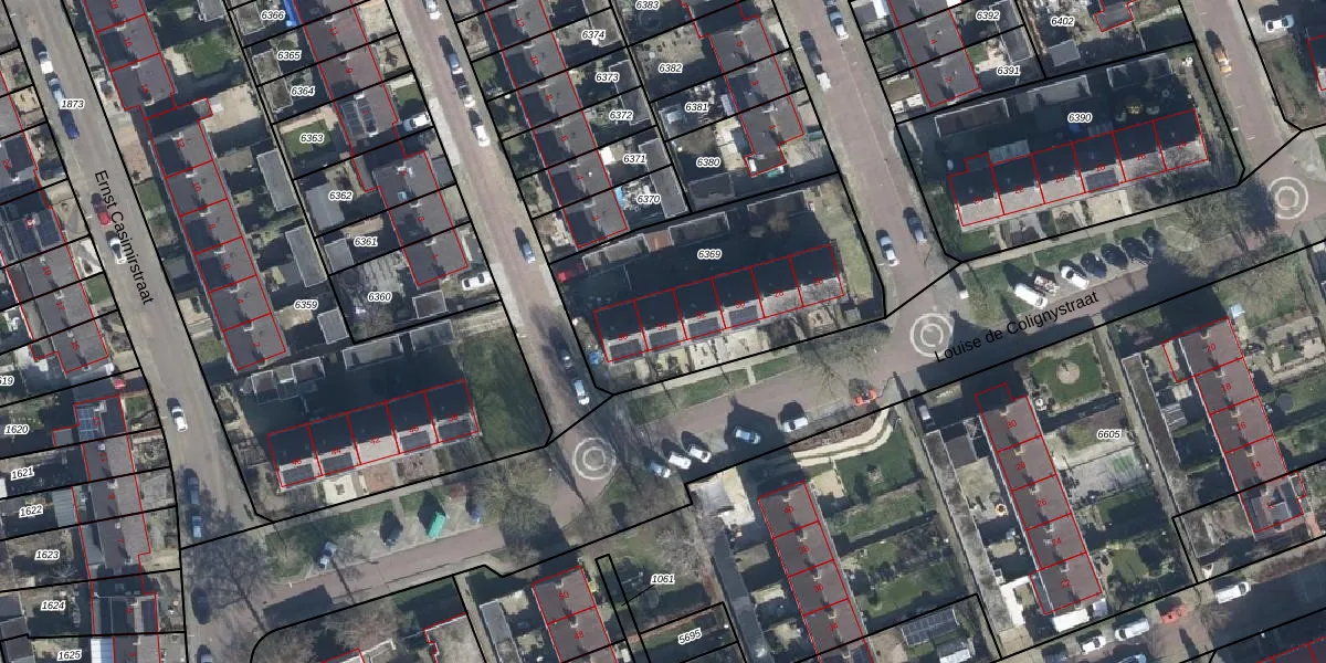 Louise de Colignystraat 34 is gelegen op kadastraal perceel ELS00K6369. Deze kadastrale aanduiding is uniek en wordt gebruikt door het Kadaster om eigendomsrechten en andere zakelijke rechten vast te leggen. Het perceel maakt onderdeel uit van de kadastrale gemeente Elst.