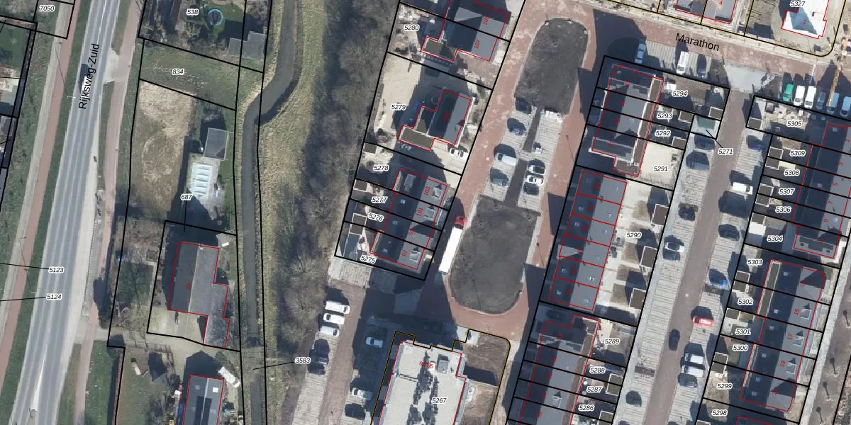 Het perceel waarop het adres ligt is ELS00-N-5277. De afkorting 'ELS00' staat voor kadastrale gemeente Elst. Het perceel is kleiner dan gemiddeld in Elst. Het perceel is 119 m² groot, terwijl het gemiddelde ligt op 2925,38 m². Het kleinste perceel in de kadastrale gemeente is 0 m² groot. De grootste perceeloppervlakte is 35,2 ha. Er zijn geen andere adressen aanwezig op het perceel. In de Basisregistratie Kadaster (BRK) werden de grenzen van het perceel geregistreerd op 29-12-2025.