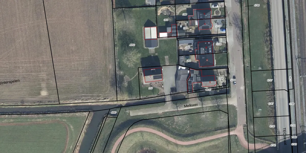 Het perceel waarop Melkwei 2 staat heeft een oppervlakte van 620 m². Dit is een groot perceel. De perceeloppervlakte wordt geregistreerd door het Kadaster. Gedetailleerde informatie over de maten van dit perceel kunt u vinden in het rapport Kadastrale kaart met maatvoering van Melkwei 2.