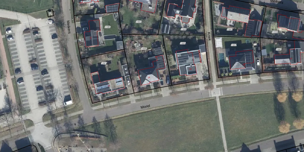 Morel 24 is gelegen op kadastraal perceel ELS00M1566. Deze kadastrale aanduiding is uniek en wordt gebruikt door het Kadaster om eigendomsrechten en andere zakelijke rechten vast te leggen. Het perceel maakt onderdeel uit van de kadastrale gemeente Elst.