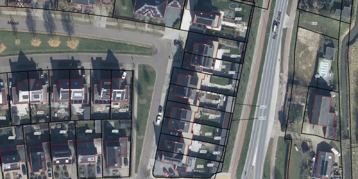 Gebruik de zoekbalk of klik op een perceel voor informatie over de adressen binnen dit perceel.