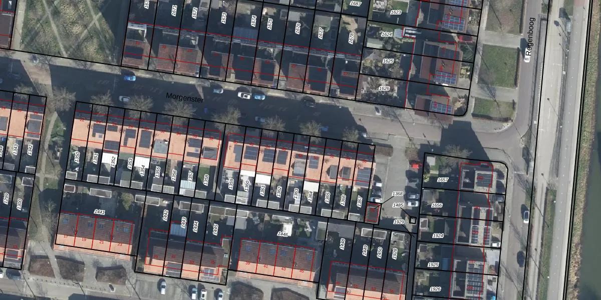 Gebruik de zoekbalk of klik op een perceel voor informatie over de adressen binnen dit perceel.