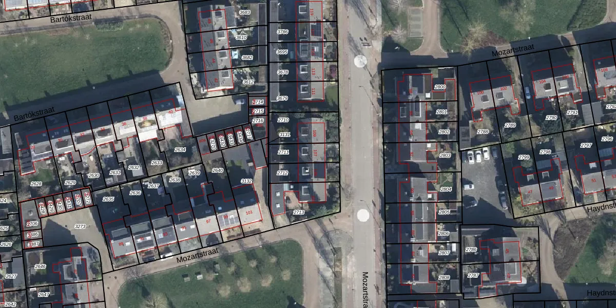 Gebruik de zoekbalk of klik op een perceel voor informatie over de adressen binnen dit perceel.