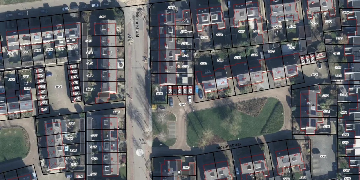 Gebruik de zoekbalk of klik op een perceel voor informatie over de adressen binnen dit perceel.