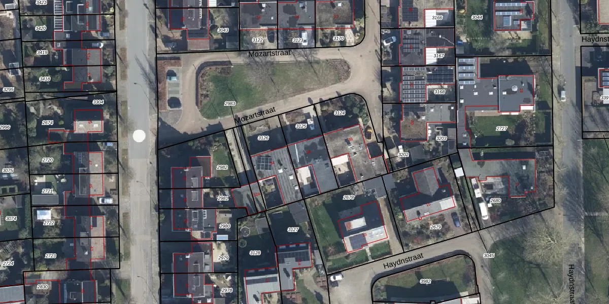 Gebruik de zoekbalk of klik op een perceel voor informatie over de adressen binnen dit perceel.