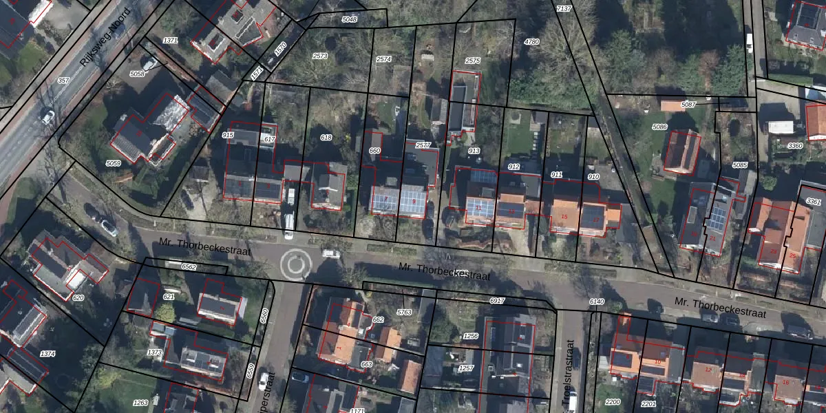 Het perceel waarop Mr. Thorbeckestraat 9 staat heeft een oppervlakte van 530 m². Dit is een groot perceel. De perceeloppervlakte wordt geregistreerd door het Kadaster. Gedetailleerde informatie over de maten van dit perceel kunt u vinden in het rapport Kadastrale kaart met maatvoering van Mr. Thorbeckestraat 9.