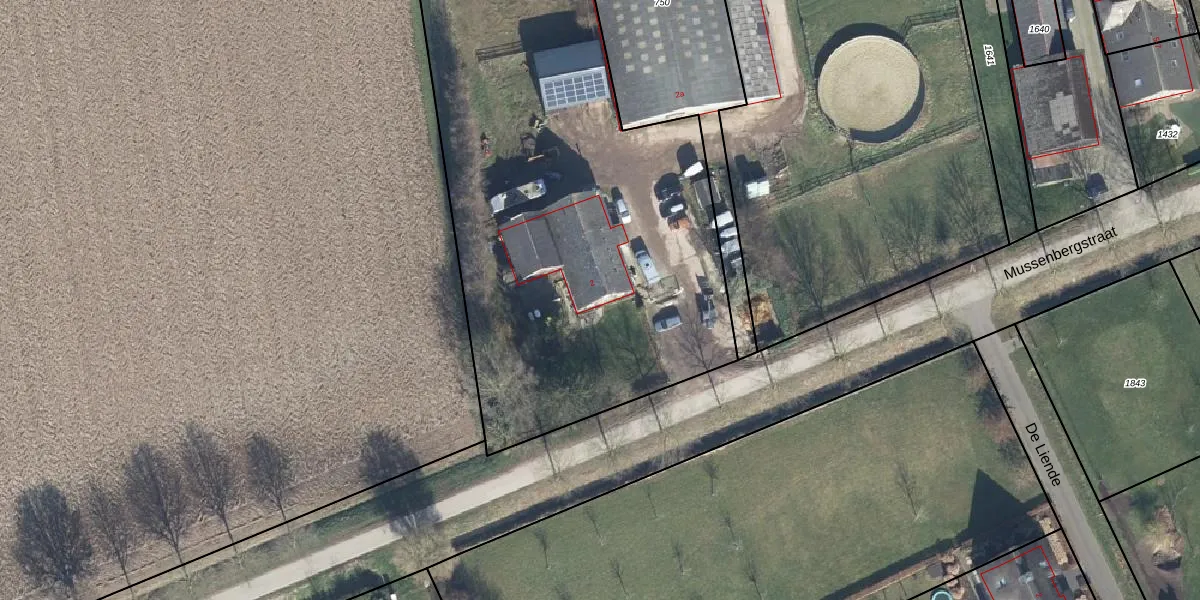 Het perceel waarop Mussenbergstraat 2 staat heeft een oppervlakte van 1,3 ha. Dit is een zeer groot perceel. De perceeloppervlakte wordt geregistreerd door het Kadaster. Gedetailleerde informatie over de maten van dit perceel kunt u vinden in het rapport Kadastrale kaart met maatvoering van Mussenbergstraat 2.