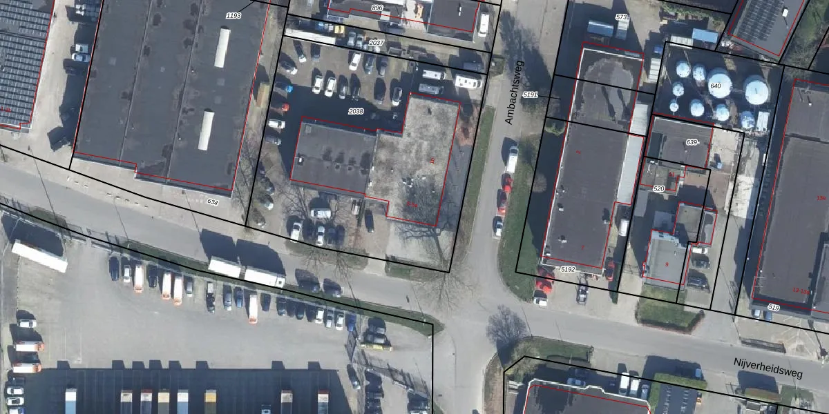 Het perceel waarop Nijverheidsweg 5 staat heeft een oppervlakte van 2400 m². Dit is een zeer groot perceel. De perceeloppervlakte wordt geregistreerd door het Kadaster. Gedetailleerde informatie over de maten van dit perceel kunt u vinden in het rapport Kadastrale kaart met maatvoering van Nijverheidsweg 5.