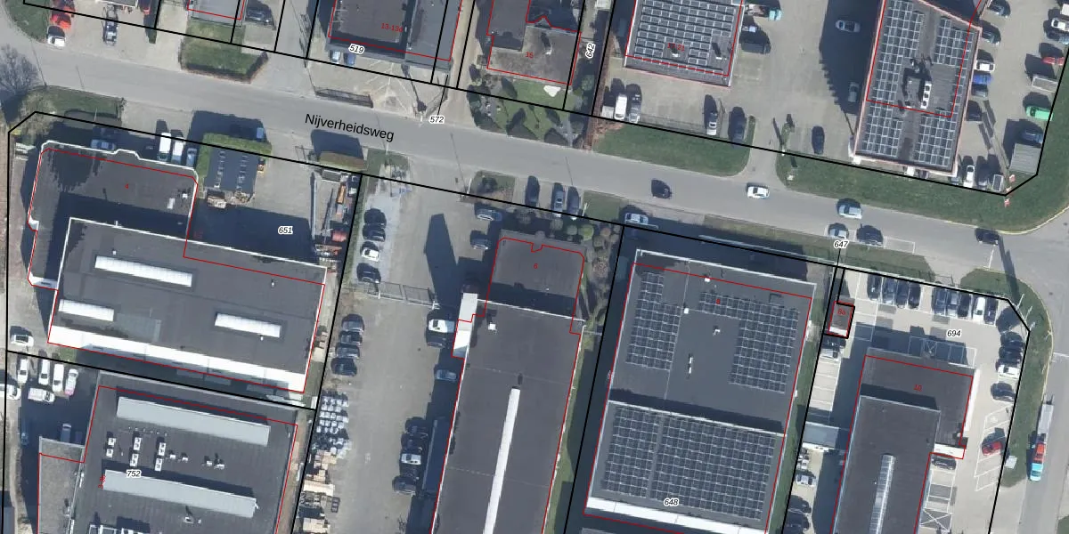 Het perceel waarop Nijverheidsweg 6 staat heeft een oppervlakte van 6011 m². Dit is een zeer groot perceel. De perceeloppervlakte wordt geregistreerd door het Kadaster. Gedetailleerde informatie over de maten van dit perceel kunt u vinden in het rapport Kadastrale kaart met maatvoering van Nijverheidsweg 6.