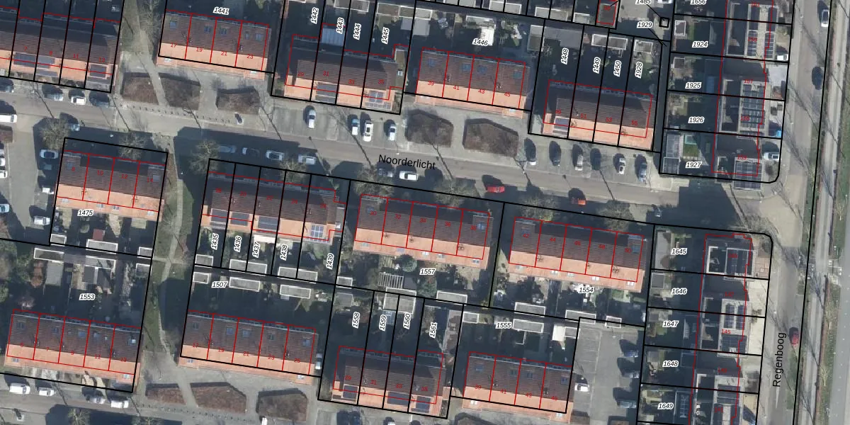Het perceel waarop Noorderlicht 34 staat heeft een oppervlakte van 914 m². Dit is een groot perceel. De perceeloppervlakte wordt geregistreerd door het Kadaster. Gedetailleerde informatie over de maten van dit perceel kunt u vinden in het rapport Kadastrale kaart met maatvoering van Noorderlicht 34.