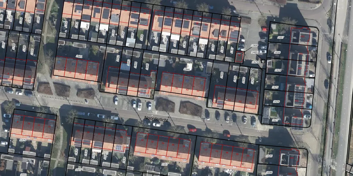 Het perceel waarop Noorderlicht 41 staat heeft een oppervlakte van 673 m². Dit is een groot perceel. De perceeloppervlakte wordt geregistreerd door het Kadaster. Gedetailleerde informatie over de maten van dit perceel kunt u vinden in het rapport Kadastrale kaart met maatvoering van Noorderlicht 41.