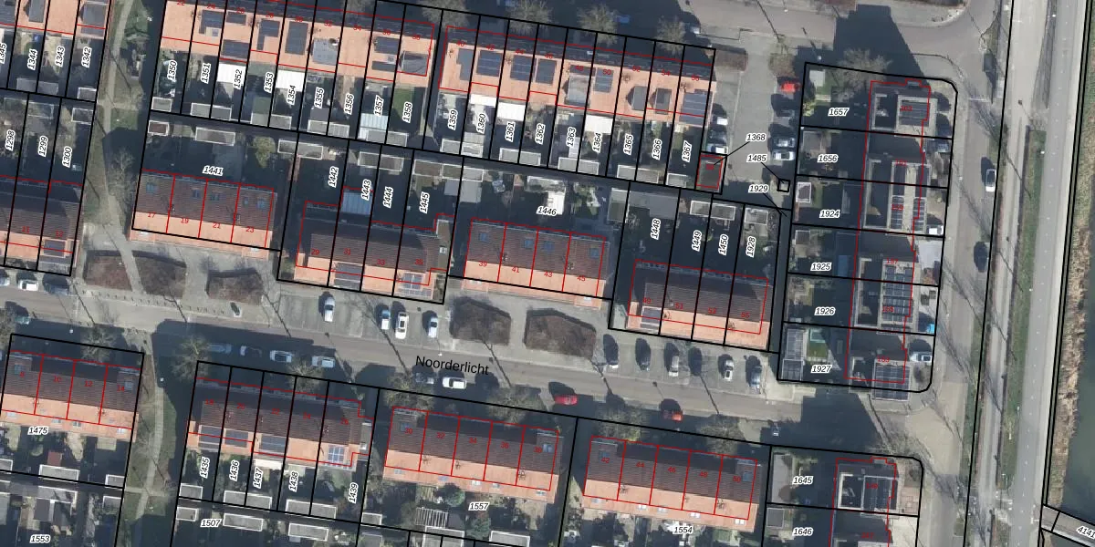 Het perceel waarop Noorderlicht 43 staat heeft een oppervlakte van 673 m². Dit is een groot perceel. De perceeloppervlakte wordt geregistreerd door het Kadaster. Gedetailleerde informatie over de maten van dit perceel kunt u vinden in het rapport Kadastrale kaart met maatvoering van Noorderlicht 43.