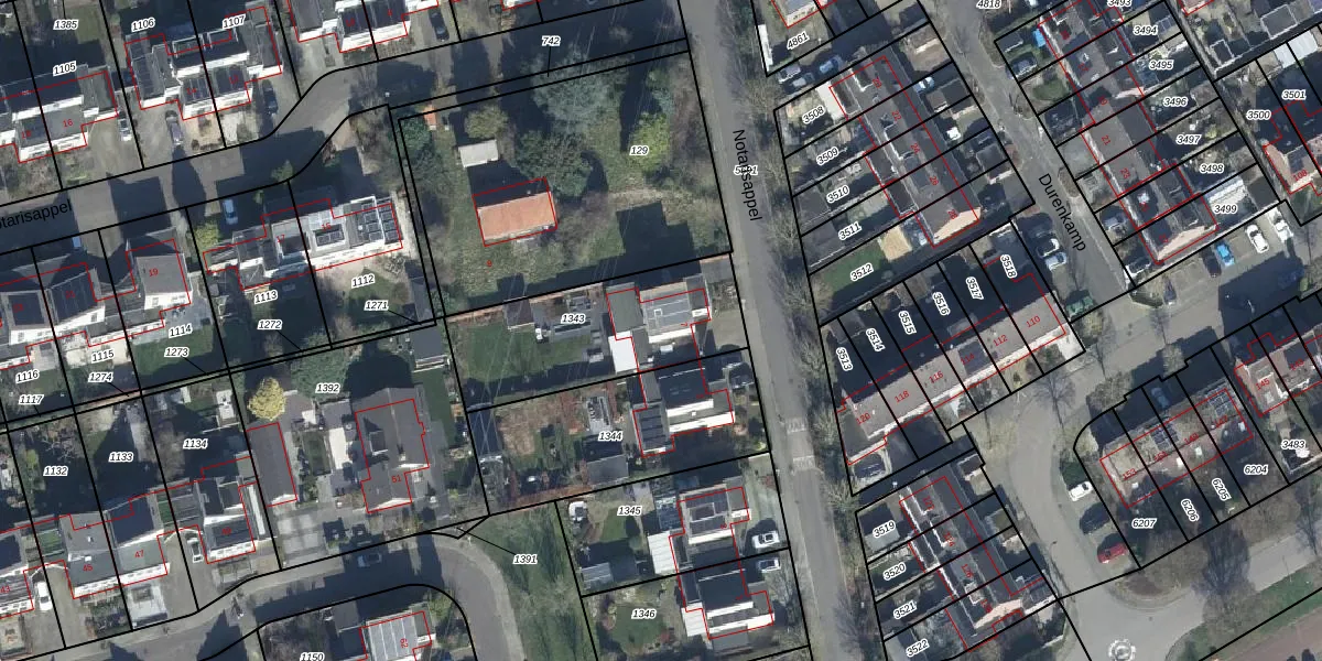 Het perceel waarop Notarisappel 7 staat heeft een oppervlakte van 656 m². Dit is een groot perceel. De perceeloppervlakte wordt geregistreerd door het Kadaster. Gedetailleerde informatie over de maten van dit perceel kunt u vinden in het rapport Kadastrale kaart met maatvoering van Notarisappel 7.