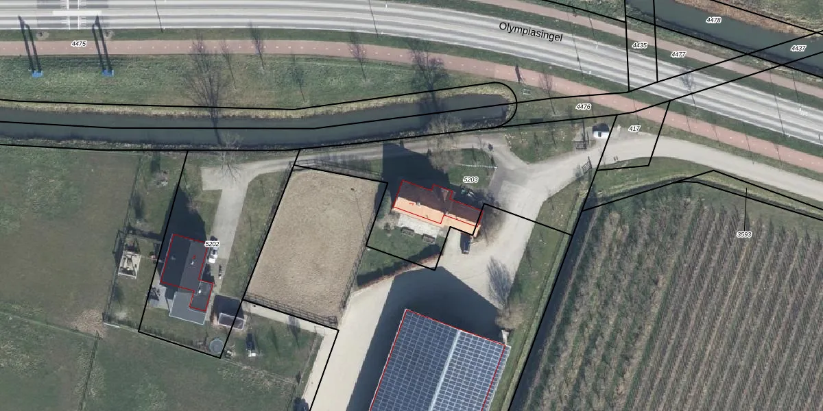 Olympiasingel 1 is gelegen op kadastraal perceel ELS00N5203. Deze kadastrale aanduiding is uniek en wordt gebruikt door het Kadaster om eigendomsrechten en andere zakelijke rechten vast te leggen. Het perceel maakt onderdeel uit van de kadastrale gemeente Elst.
