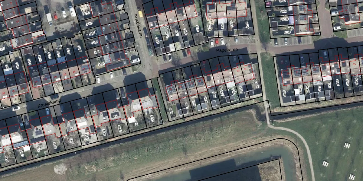 Gebruik de zoekbalk of klik op een perceel voor informatie over de adressen binnen dit perceel.