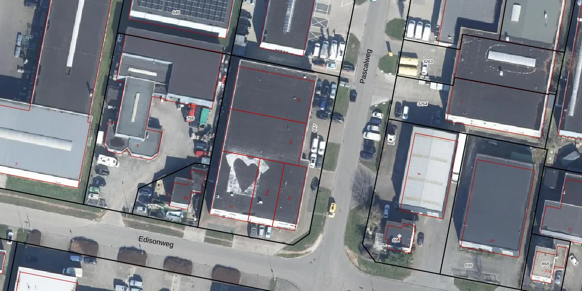 Het perceel waarop Pascalweg 12 staat heeft een oppervlakte van 2265 m². Dit is een zeer groot perceel. De perceeloppervlakte wordt geregistreerd door het Kadaster. Gedetailleerde informatie over de maten van dit perceel kunt u vinden in het rapport Kadastrale kaart met maatvoering van Pascalweg 12.