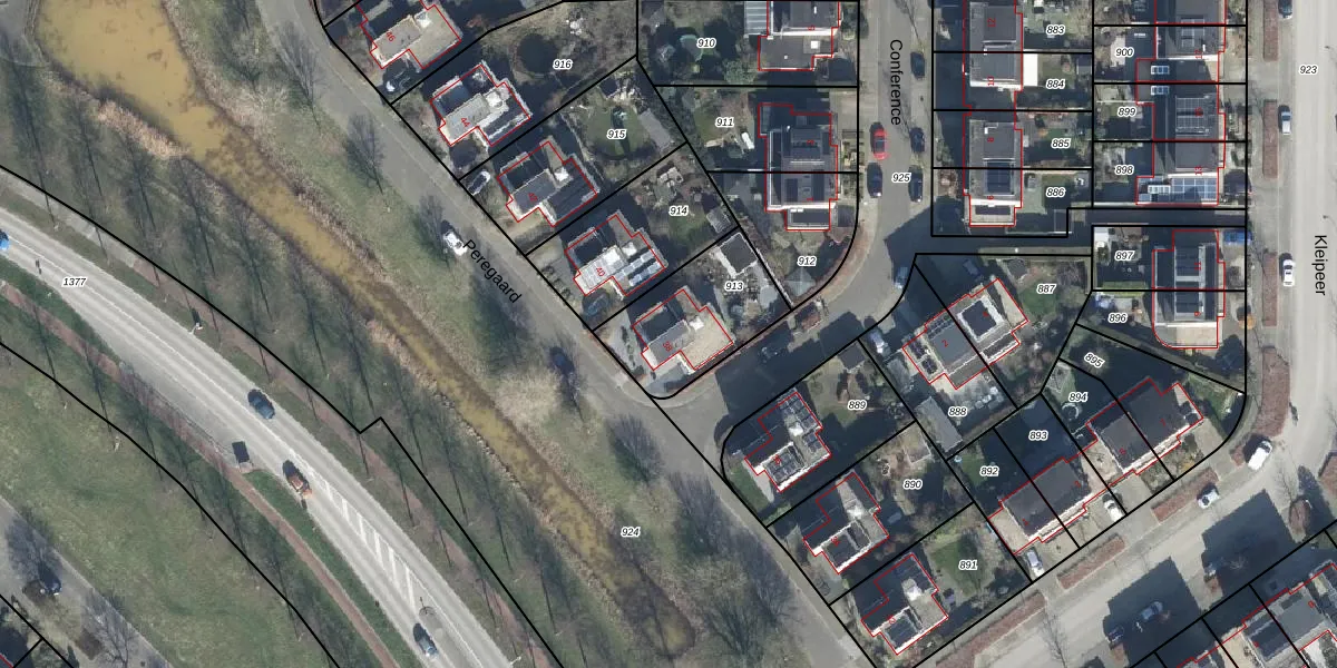 Gebruik de zoekbalk of klik op een perceel voor informatie over de adressen binnen dit perceel.