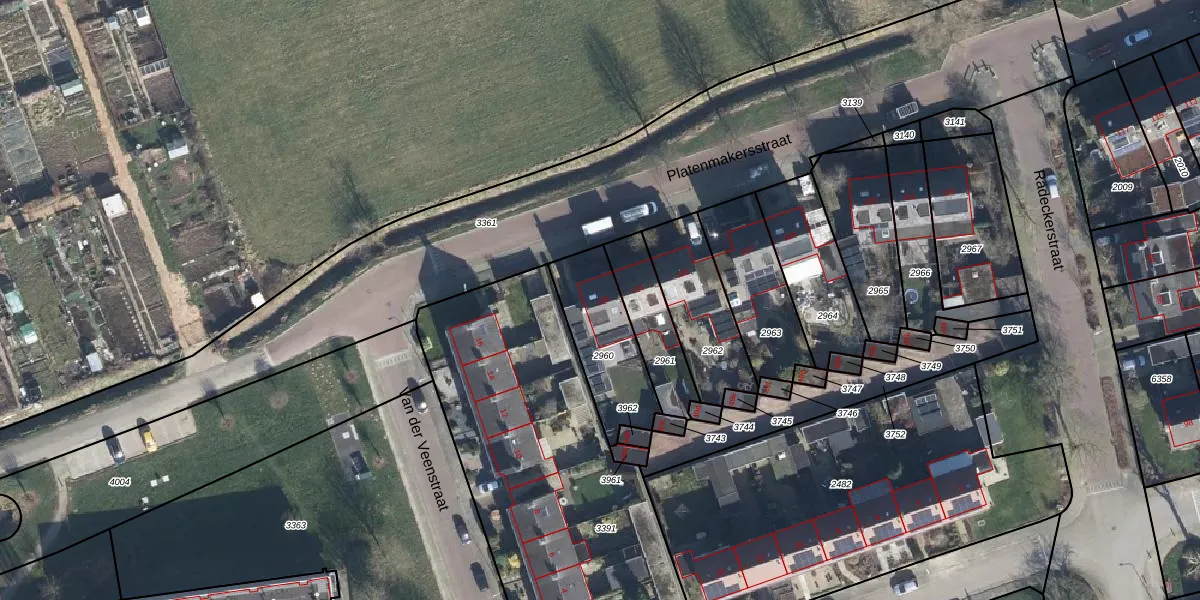 Het perceel waarop Platenmakersstraat 133 staat heeft een oppervlakte van 310 m². Dit is een groot perceel. De perceeloppervlakte wordt geregistreerd door het Kadaster. Gedetailleerde informatie over de maten van dit perceel kunt u vinden in het rapport Kadastrale kaart met maatvoering van Platenmakersstraat 133.
