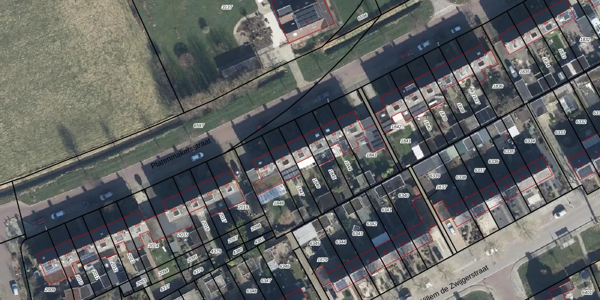 Gebruik de zoekbalk of klik op een perceel voor informatie over de adressen binnen dit perceel.