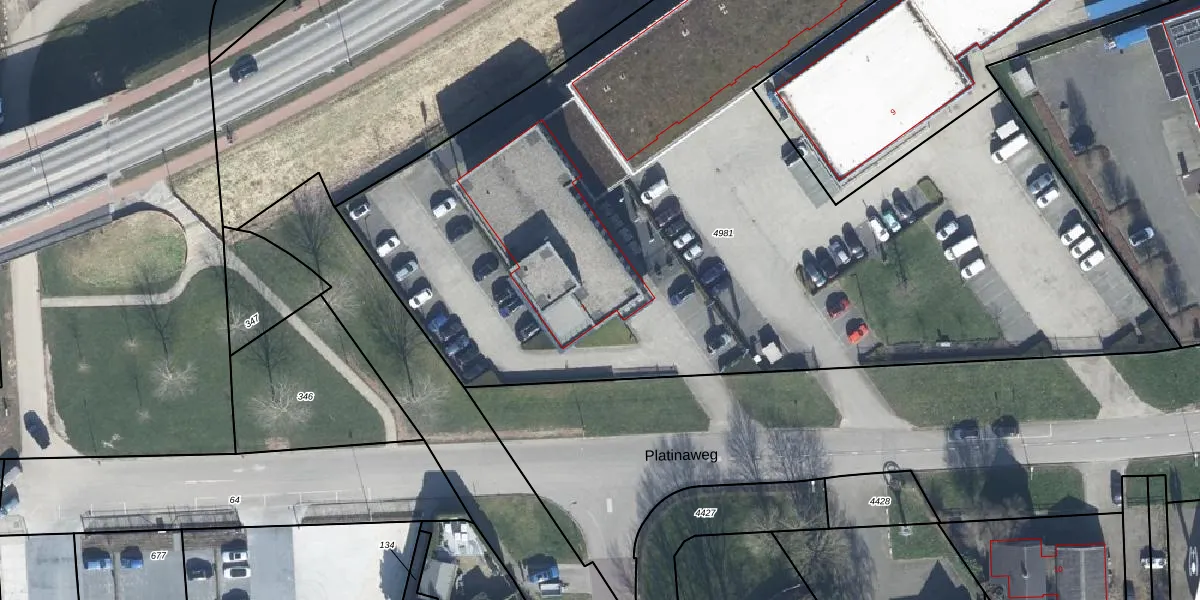 Het perceel waarop Platinaweg 7 staat heeft een oppervlakte van 5980 m². Dit is een zeer groot perceel. De perceeloppervlakte wordt geregistreerd door het Kadaster. Gedetailleerde informatie over de maten van dit perceel kunt u vinden in het rapport Kadastrale kaart met maatvoering van Platinaweg 7.
