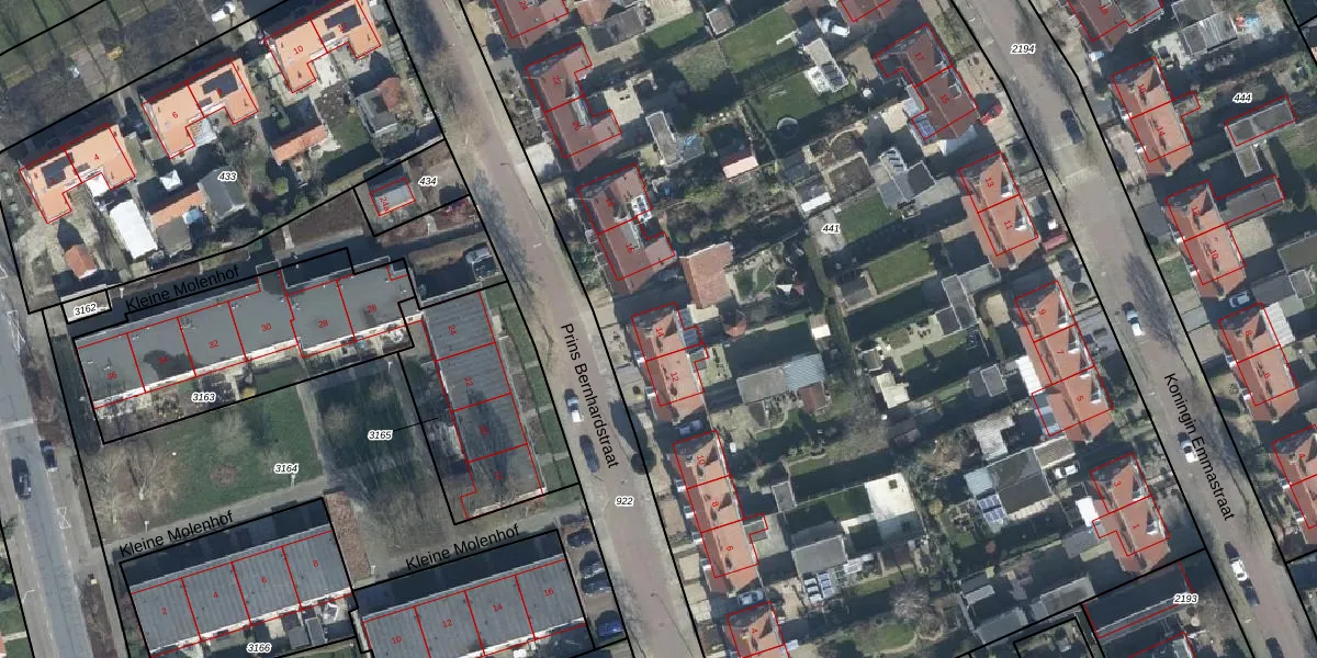 Het perceel waarop Prins Bernhardstraat 14 staat heeft een oppervlakte van 9645 m². Dit is een zeer groot perceel. De perceeloppervlakte wordt geregistreerd door het Kadaster. Gedetailleerde informatie over de maten van dit perceel kunt u vinden in het rapport Kadastrale kaart met maatvoering van Prins Bernhardstraat 14.