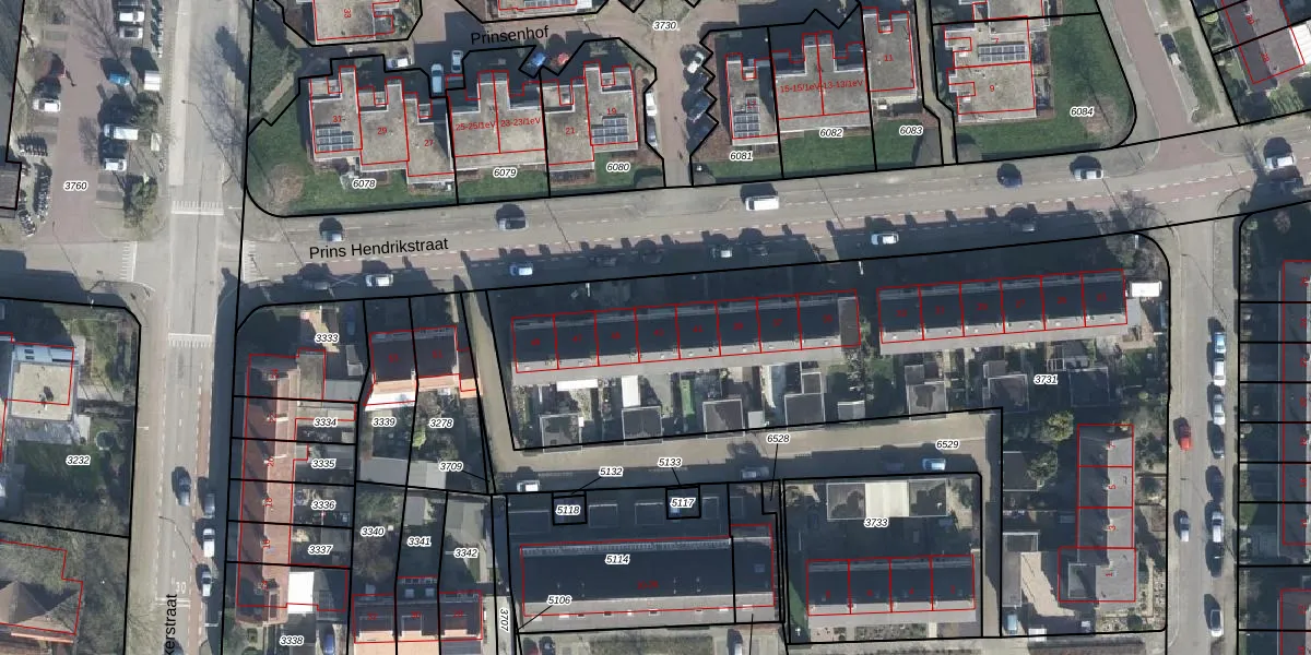 Het perceel waarop Prins Hendrikstraat 43 staat heeft een oppervlakte van 3415 m². Dit is een zeer groot perceel. De perceeloppervlakte wordt geregistreerd door het Kadaster. Gedetailleerde informatie over de maten van dit perceel kunt u vinden in het rapport Kadastrale kaart met maatvoering van Prins Hendrikstraat 43.
