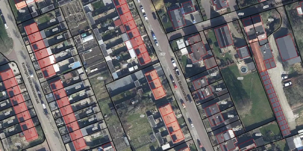 Het perceel waarop Prinses Beatrixstraat 19 staat heeft een oppervlakte van 2180 m². Dit is een zeer groot perceel. De perceeloppervlakte wordt geregistreerd door het Kadaster. Gedetailleerde informatie over de maten van dit perceel kunt u vinden in het rapport Kadastrale kaart met maatvoering van Prinses Beatrixstraat 19.