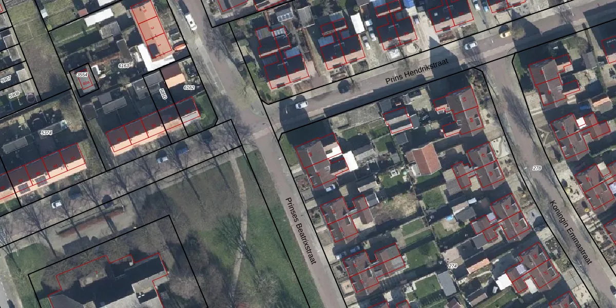 Het perceel waarop Prinses Beatrixstraat 26 staat heeft een oppervlakte van 8360 m². Dit is een zeer groot perceel. De perceeloppervlakte wordt geregistreerd door het Kadaster. Gedetailleerde informatie over de maten van dit perceel kunt u vinden in het rapport Kadastrale kaart met maatvoering van Prinses Beatrixstraat 26.