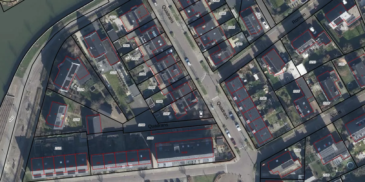 Het perceel waarop Quadrans 11 staat heeft een oppervlakte van 251 m². Dit is een middelgroot perceel. De perceeloppervlakte wordt geregistreerd door het Kadaster. Gedetailleerde informatie over de maten van dit perceel kunt u vinden in het rapport Kadastrale kaart met maatvoering van Quadrans 11.