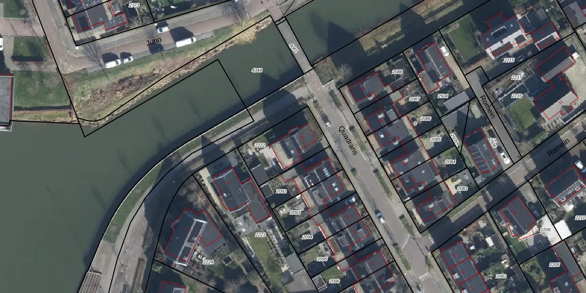 Het perceel waarop Quadrans 21 staat heeft een oppervlakte van 430 m². Dit is een groot perceel. De perceeloppervlakte wordt geregistreerd door het Kadaster. Gedetailleerde informatie over de maten van dit perceel kunt u vinden in het rapport Kadastrale kaart met maatvoering van Quadrans 21.