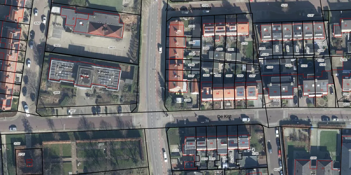 Het perceel waarop Rädeckerstraat 2 staat heeft een oppervlakte van 322 m². Dit is een groot perceel. De perceeloppervlakte wordt geregistreerd door het Kadaster. Gedetailleerde informatie over de maten van dit perceel kunt u vinden in het rapport Kadastrale kaart met maatvoering van Rädeckerstraat 2.