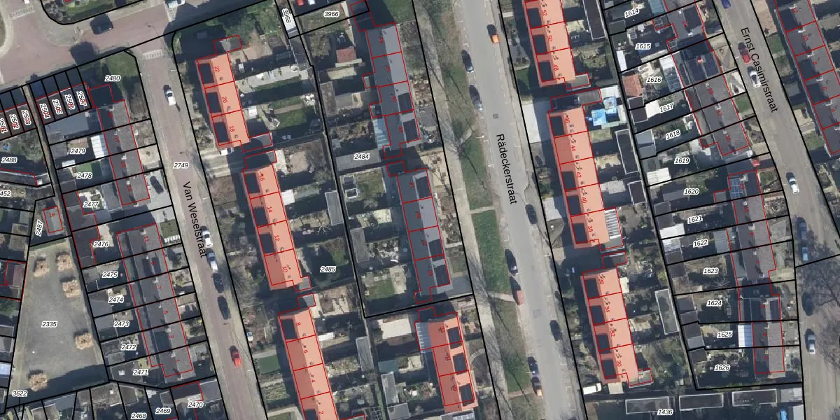 Rädeckerstraat 39 is gelegen op kadastraal perceel ELS00I2484. Deze kadastrale aanduiding is uniek en wordt gebruikt door het Kadaster om eigendomsrechten en andere zakelijke rechten vast te leggen. Het perceel maakt onderdeel uit van de kadastrale gemeente Elst.