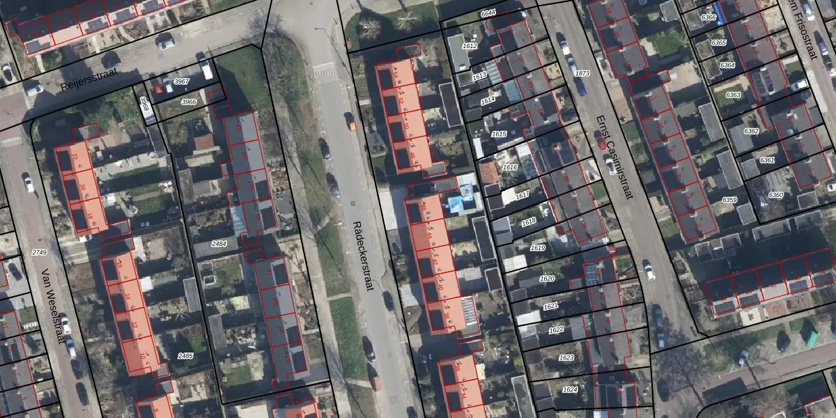 Het perceel waarop Rädeckerstraat 46 staat heeft een oppervlakte van 3975 m². Dit is een zeer groot perceel. De perceeloppervlakte wordt geregistreerd door het Kadaster. Gedetailleerde informatie over de maten van dit perceel kunt u vinden in het rapport Kadastrale kaart met maatvoering van Rädeckerstraat 46.