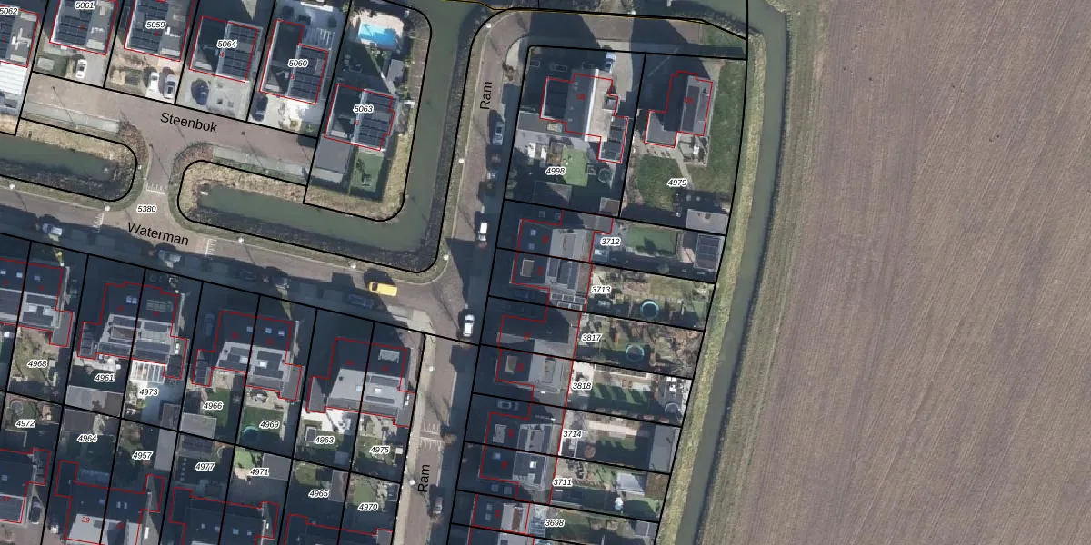 Het perceel waarop Ram 54 staat heeft een oppervlakte van 364 m². Dit is een groot perceel. De perceeloppervlakte wordt geregistreerd door het Kadaster. Gedetailleerde informatie over de maten van dit perceel kunt u vinden in het rapport Kadastrale kaart met maatvoering van Ram 54.
